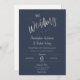 Create a personalised and splendid, chic, and minimalist The Wedding Of invitation for your wedding or anniversary. This wedding invitation features spacious and beautiful calligraphy script writing in faux silver foil lettering with a navy blue background. You can easily customise it with your own text and customise it to your liking. Please note: "-The- Wedding" and the ring artwork cannot be edited. Additional Note: The silver foil print is a faux silver foil effect. It is NOT the actual hot stamping silver foil.
