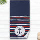 Custom Navy Blue White Red Stripes Anchor Nautical Beach Towel