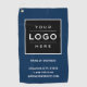 Company branded golf towel features your professional business logo and custom preferred business information - website, location, email, phone, etc. - text that can be personalised. Navy blue and white colours can be changed.