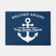 Set sail in style with this Custom Nautical Boat Name Doormat, featuring a bold navy blue and white anchor design and the welcoming message "Welcome Aboard." Personalise it with your boat’s name for an elegant, nautical touch to your entryway. This doormat is perfect for your boat deck, beach house, or front door, adding both charm and functionality to your nautical-themed decor.