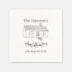 custom new family home napkins. Great for house party, new home et. Design feature ink drawing of a house and custom family details.