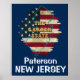 Unique Paterson, New Jersey poster features a vintage state flag and the state nickname. It’s a great way to show your hometown patriotic pride. Personalise this product with your city, you can also change the background colour and font.