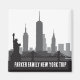 Customise these chic New York city vacation magnet for your family trip to the big apple. This modern keepsake features a great black and white drawing of the Manhattan skyline and the Statue of Liberty above your personalised text. Cool skyscrapers souvenir for your trip.