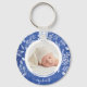 Round button keychain features your favourite photo surrounded with white leaves, berries and dots on a textured blue background. TIP: Upload a high resolution photo that features your baby in the middle - you can crop to a square, too. Keychains make memorable gifts for family, grandparents and friends or create for yourself.