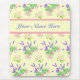 A pretty, customisable floral mousepad, with a pattern of pink Roses, creamy white Mock Orange Blossom and purple Lavender, from a handpainted watercolour design by Judy Adamson.
