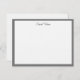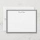 Custom Note Card is shown in the white linen card paper with a grey coloured border and a charcoal grey inner border trim, name text is in the same colour.