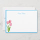 Custom Note Card shown in white with a cute spring tulips print and with a blue border trim.