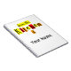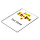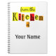 A custom notebook with retro letters reading "From the Kitchen of" with scripty and cute black letters against colour blocks of red, orange and yellow. Customise it to change fonts, background colours and more and save your design for later.