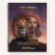 Personalise your 2024 Notebook featuring Jesus and a lion against a sunset backdrop with three crosses. Enjoy full text customisation on both the front and back covers, allowing you to include your name at the top, your favourite scripture, and the notebook name and year. Crafted for you by Infinity Digital Art.