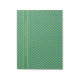 A stylish Notepad or Jotter to personalise, with a pattern of trending light green (Tender Shoots) and dark blue (Monaco Blue) polka dots in varying sizes on an Emerald Green background.