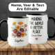 Honour the incredible woman born in November with this elegant custom mug featuring her birth month flowers—Chrysanthemum & Carnation. One side displays her name beneath a timeless floral illustration, while the other side reads: “Making the world a better place since [year].”