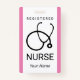 Custom nurse name badge with stethoscope logo image. Clip or retractable lanyard string optional. Modern typography template design. Add your own name, job title, work function, etc. Personalized name tags for RN nurse, medical personnel, hospital staff, healthcare workers, paramedic, company employees, surgeon, physician, volunteers, coworkers, colleagues, rescue workers, emergency responders, teachers, nurses, business managers, care home guests, visitors, clients, nursing school students, doctor, paramedic, vet etc. Customizable colors and lettering. Basic layout with clear easy to read letters. Change quantity to get the cheap bulk price. Cheerful bright orange color. Pink and all color combinations are possible. Vertical shape.