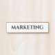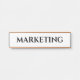 Label your workspace in style with this modern “Marketing” office door sign. Featuring bold serif typography on a crisp white background and accented with a contemporary copper frame, this sign is both professional and eye-catching. Perfect for corporate offices, coworking spaces, or home setups, this nameplate adds clarity and class to your environment. Replace with names of other departments as Finance or Manufacturing.