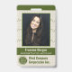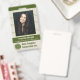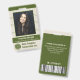 These photo ID badges have an olive-green-and-beige theme. They include your employee's photo, name, and job title on the front, plus the name of the corporation / company and business logo. The back includes room for "if found" information (including address and phone number), plus space for an ID number and a bar code. The design also includes a grid pattern background and a line graph theme. Use the easy template to personalise, and then use the design tool to make more detailed changes (such as adjusting the size of the logo or barcode or deleting and rearranging elements). This eye-catching design is perfect for an office manager, administrative assistant, executive, or any business employee.