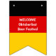 Custom OKTOBERFEST German Beer Bunting Flags. The even flags show patriotic flag of GERMANY with CUSTOMIZABLE TEXT which you can personalise, and the odd flags show the three beers cartoon and PROST! in curved text at the top. At the bottom, the text reads GREAT GERMAN BEER . This text is also CUSTOMIZABLE so you can change as desired. These Oktoberfest bunting flags are ideal for private parties, public celebrations, local, state and national beer festivals, etc - especially Oktoberfest. Matching items (including Bavarian version) are available in the EUROPE and CHEERS & BEERS Collections by Berean Designs.