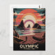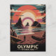 Olympic National Park, a UNESCO World Heritage site in Washington, is a natural wonder with a million acres of protected wilderness. Its diverse ecosystems span rugged mountains, temperate rainforests, and a wild coastline. The park is renowned for its distinctive features, including the towering sea stacks of Rialto Beach and lush, moss-draped forests. This midcentury art piece captures the unique, raw beauty of Olympic's landscape and its enduring appeal, making it a perfect tribute to US National Parks. Customisable text is available, so you can personalise it with your own message, location, or name, making it perfect for souvenirs, travel mementos, or unique greeting cards.