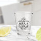 Gift a special grandpa with this awesome custom shot glass for Father's Day or Grandparents Day. Makes a great addition to a beer-loving grandpa's home bar setup, featuring "Opa's Bar" and the year established on a vintage style bar logo. All text is customisable; switch up the nickname or swap pub for bar if desired.