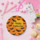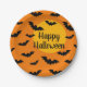 Custom orange and black bats Halloween party paper plates. Add your own personalized happy holiday greeting. Spooky party supplies, decorations and disposable throwaway accessories for fun costume party, trick or treat, night gathering, bbq, dinner, Birthday, wedding etc. Available in small and large. Change the quantity to get the cheap bulk price. Suitable for men, women and kids. Full moon with elegant text template.