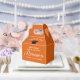 This modern custom high school reunion party favour box features the high school alumni name in white typography on an orange background for a 10th, 20th, or 30th alumni.