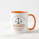 This custom law school graduation mug gift features modern orange typography for a class of 2024 graduate. Customise with your graduating year under the scales of justice for a great personalised lawyer keepsake for a graduating attorney.