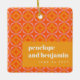 Custom Modern Orange and Yellow Retro Typography Wedding Ceramic Ornament