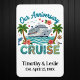 Tropical cruise anniversary design featuring a ship, palm trees, and floral accents. Personalized anniversary stateroom door marker with names and date for a romantic celebration. Please note: Not all ship's doors are magnetic. We cannot guarantee your door will be magnetic. Please check with your travel agent, the cruise line, or via forums.