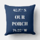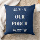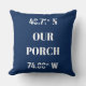 A beautiful way to show how much you love your porch by customising this design with your own home coordinates. Search for your coordinates on a mapping site and simply customise the text, latitude and longitude numbers to create your own personalised design. A warm navy blue colour in the background making it ideal for any home decor.