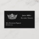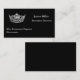 This custom business card template is shown in a black colour with a sample text in white and has a pageant crown print. Customise and change the sample information to yours.