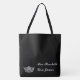 Custom Tote bag is shown in the colour black with a pageant queens crown,name and title as a sample, customise this tote and change the name and title and text to yours.