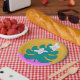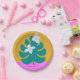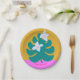 Custom cute palm name birthday modern paper party plate .Personalised tropical aloha bright colours modern paper plates for birthdays, partys, events. barbecue, summer party. . Beautiful vibrant tropical exotic paper plate with big green palm leaf. Meal item for women birthdays, mothers birthdays, wifes, adults, girls, young , travel lovers .
