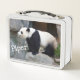 This is a standard metal lunchbox that appears to work just fine. We designed this box ourselves with an uploaded photo and custom text on the front and back. It looks absolutely beautiful except the front of the lunchbox is not centered like it shows in the photo. The print borders don't align with the inset flat part of the box where the preview photo online showed it perfectly centered in there. The back looks nice and centered though.