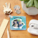 This template design features a placeholder photo of boys popping through a punched paper hole that YOU REPLACE with your favourite photo of family members or a pet(s). You may have to try several photos before you get a great fit into the odd shaped setting. A square photo or a horizontal photo with subjects in the centre will work best. Then personalise the wording in the template field or click customise to select a font style, size, and colour you like.