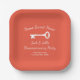 Custom paper plates for housewarming BBQ party. Elegant design with old vintage skeleton key. Great for celebrations with friends and family. Add your own personalised text to celebrate your new address. Perfect for pastry treats, BBQ or dinner at the new house. Custom colour paper party supplies. Square and round options.