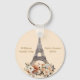 Personalize this chic Paris, France vacation keychain for your family reunion or girls trip to Europe. An beautiful watercolor drawing of the Eiffel tower with flowers at the bottom. A lovely keepsake souvenir gift.