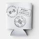 Add your own text to personalise can cooler holder with a custom wedding passport stamp with your destination location, names, initials, and wedding or reception date for a travel theme bridal shower, wedding favour, bridal party gift, or keepsake. -Pick any background colour using Zazzle's advanced design editor where you can also adjust fonts and text placement, or contact the Paper Grape Destinations Zazzle Designer for help with colours or fitting text correctly.