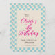 Custom Pastel Blue Checkered Birthday Party Invitation
