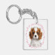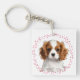 This pastel pink keychain features your dog's photo on one side and a festive pastel pink cavalier King Charles Spaniel silhouette design with the phrase 'I love my cavalier.' and dog’s name on the other. Personalise with your name and cute photo to create a unique pastel-coloured keychain that makes a thoughtful present for friends, family, coworkers, or any pet lover. Great for everyday use, birthdays, or as a pastel accent at home. Perfect pastel gift for cavalier lovers – customise with your name and photo today!