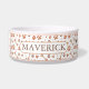 This bowl features paws and bones pattern with a custom dog name.