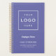Add a professional look to your workspace with a custom company branded spiral business planner featuring a large space for your business logo with modern custom text that can be personalized with the name of the employee or business owner, business name, location, slogan, website, or other info. Makes a great corporate gift. Note, the purple / blue periwinkle background and white color scheme can be modified.