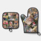 Custom Personalised 17 Photo Collage Gold Monogram Oven Mitt & Pot Holder Set