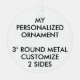 Custom Personalised 3" ROUND METAL ORNAMENT