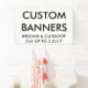 INDOOR BANNER: 12 oz. lightweight and durable, fade and tear resistant, best suited for indoor or short-term outdoor events. White flexible vinyl material with an elegant matte finish.