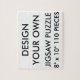 Custom printed personalised SMALL 110 PIECE JIGSAW PUZZLE Blank Template - 8" x 10" (110 pieces). Design, create, make your own. Vivid full colour print of your photo or design. Includes beautiful gift box with puzzle image also printed on the lid. Sturdy cardboard stock, mounted on chipboard, easy wipe-clean surface. Lots of alternative size puzzles available. Best for a kids' or grandparents' birthday or Christmas gifts and for Jigsaw Puzzle fanatics. Warning: Not suitable for children under 3.