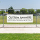 OUTDOOR BANNER WITH METAL GROMMETS: 13 oz. sturdy and durable, fade and tear resistant, holds up against the elements. White flexible material with an elegant matte finish. 3/4" OD brass grommets spaced every 2' along long lengths of banner with 1 weld in each edge.
