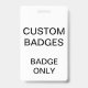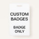 Custom printed personalised 3.38" x 2.13" VERTICAL BADGE Blank Template. Design, create, make your own. Your photo, image, text, logo, graphics in full colour edge-to-edge print on the front and the back, horizontal or vertical. Made of PVC plastic, durable, won't fade or tear. Retractable, Metal Clip, Lanyard Necklace, or Just Badge.