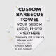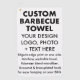 Design your own custom personalised Barbecue Towel, 16" x 24". Create your own personalised 80% woven polyester and 20% polyamide blend microfiber bar towel, featuring brass-plated hook and grommet for quick hanging on your barbecue or bar. Make your own fully customisable machine washable garden entertaining towel by personalising the top of the BBQ towel with your photo, image, design, logo, plus add text.