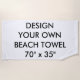 Custom printed personalised BEACH TOWEL Blank Template - 70" x 35". Design, create, make your own. Your photo, image, text in full colour edge-to-edge vibrant sublimation print. Front is a polyester blend, back is 100% cotton, machine washable. Best for vacations summer time, Spring Break,, and birthday and Christmas gifts.
