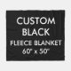 Custom Personalised BLACK 60" x 50" Fleece Blanket