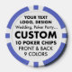 Customise the front, back and edge of your poker chips with a photo, picture, image or design, and add text, vividly printed on high quality composite plastic. Add your logo and branding for business promotion, and makes a perfect favour gift for a wedding, or token for a birthday, sweet sixteen or bachelorette party, corporate celebration or other special event. These fun casino chips have an 'easy stack' textured surface. A great customisable, personalised gift for Christmas or any occasion. Poker Chip Dimensions: 1.55" diameter x 0.125" thick.