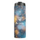 Illuminate your daily hydration with the "Celestial Sparkle: Personalised Bokeh Tumbler", a design that captures the fleeting beauty of light. This tumbler features a dazzling bokeh effect with orbs of golden and blue light that create an elegant pattern resembling a night sky full of stars or the festive lights of a celebration.